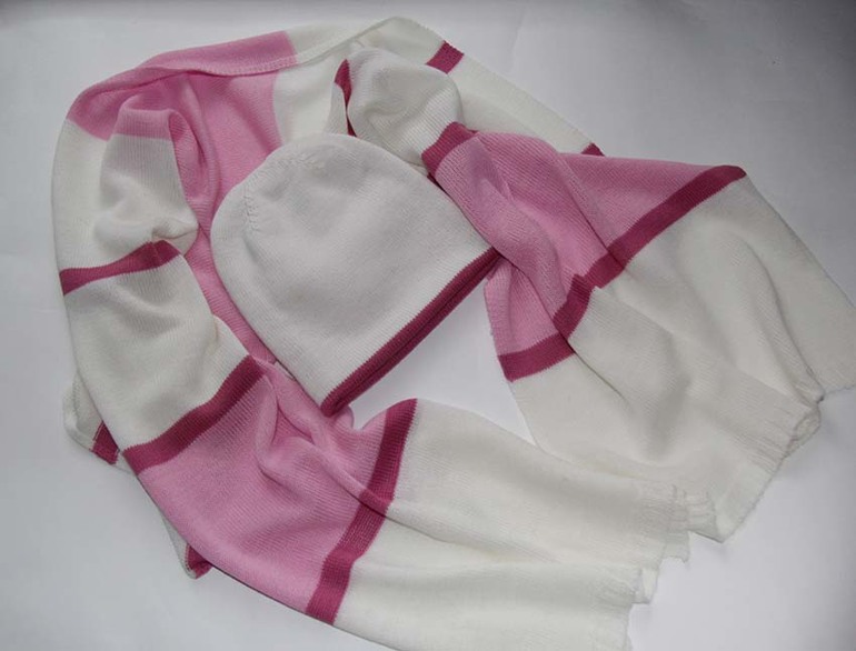 Вот такой комплект связался в подарок. Шапочку двухсторонняя с одной стороны белая, а с другой розовая.