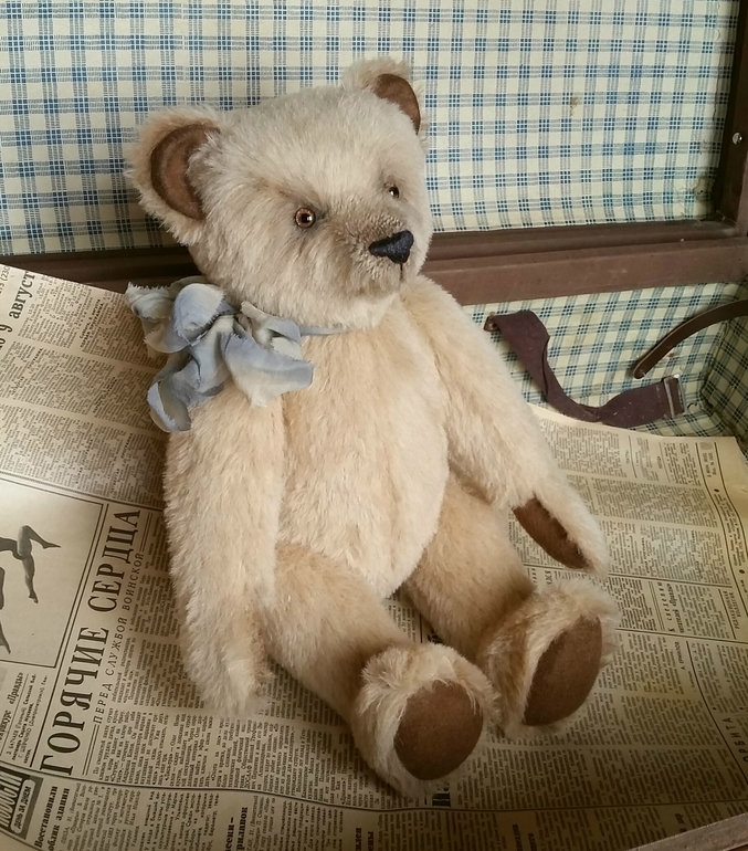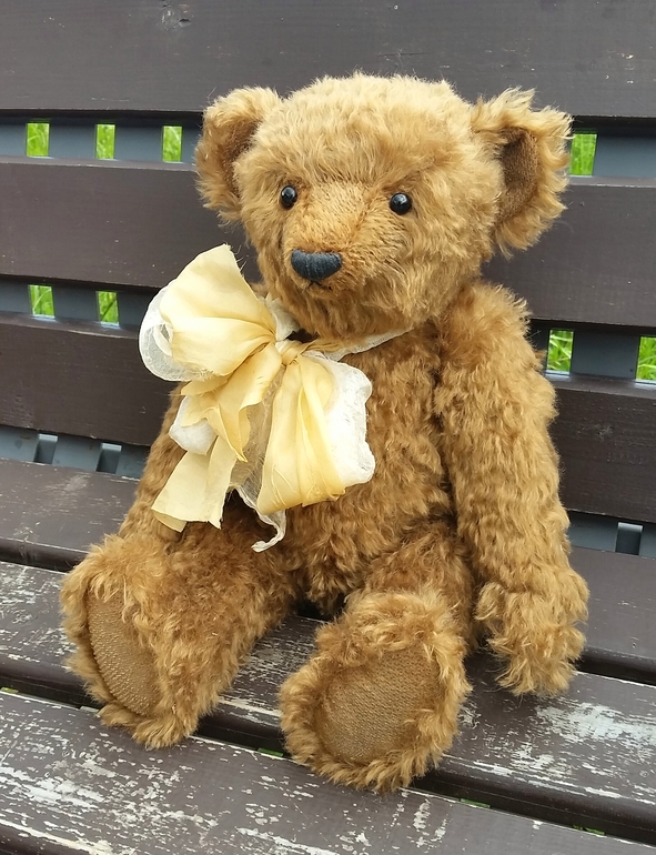 Мишка из немецкого мохера, рост 42см., набит дубовой стружкой, древесной шерстью, утяжелен минеральным гранулятом.