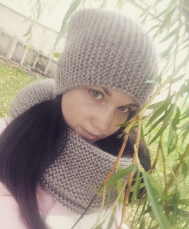 Вязание спицамиКомплект шапочка Бини и снуд. Связаны из пряжи 40% мохер, 60% премиум акрил в 3 нити. Мягкий, легкий, уютный и ооочень теплый))))