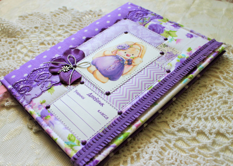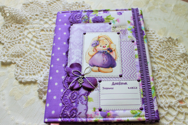 Переделала обложку готового фабричного дневника. Обложка из картона, обтянута хлопком двух видов и проложена тонким поролоном, закрывается на широкую резиночку