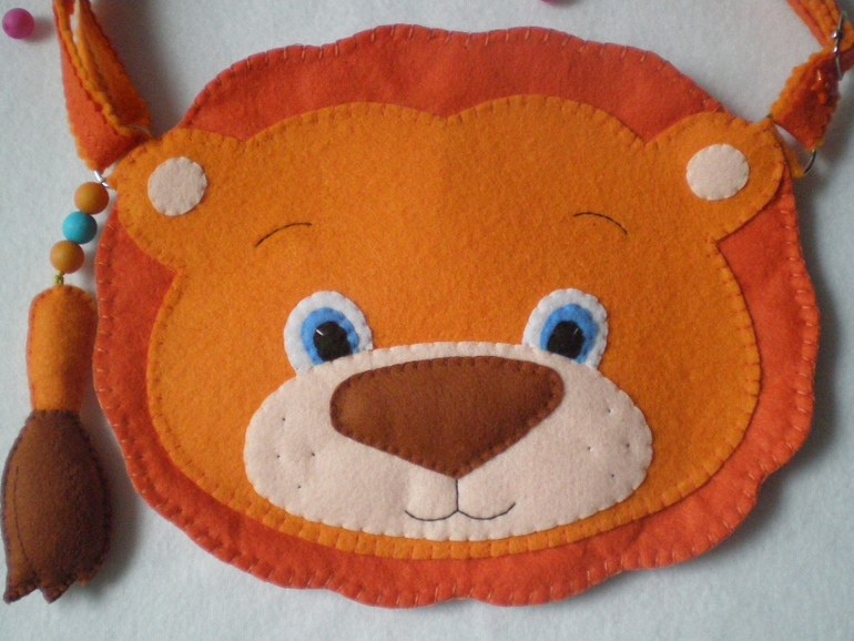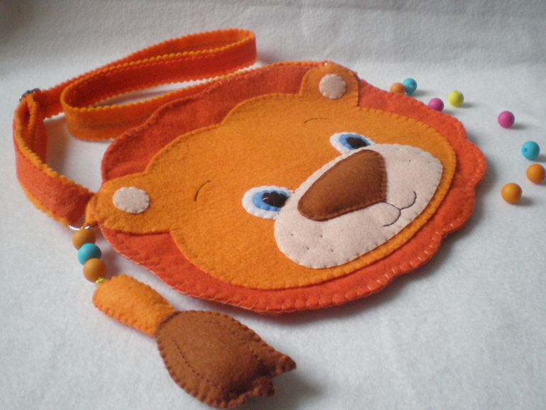 Вторая - сумочка Львенок) пошита из фетра толщиной 2 и 1 мм. также застегивается на магнитную кнопку. размеры - 19х24см.