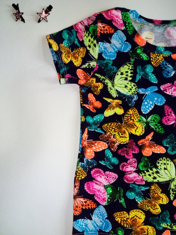 Футболка с бабочками из кулирки с лайкрой размер 80.