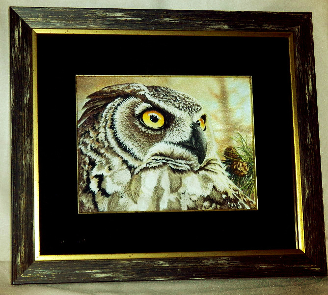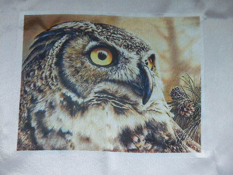 Спасибо Анюта) Примерно 25 дней ,вышивала не каждый день.Действительно,над перышками долго сидела.Не понимала как вышить перья-пушок-шерсть.Так как на принте выглядело так