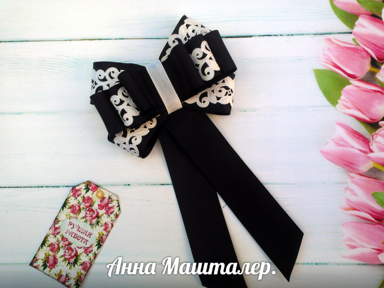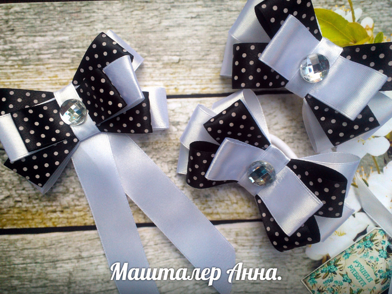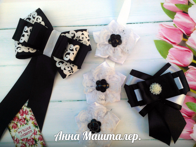 А какого цвета у вас форма? Неужели черная? Первый бантик уж очень траурно выглядит.... Извините