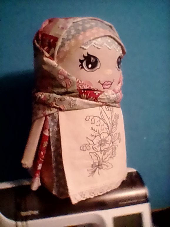 Красавица с личиком. Крупненькая и объемненькая. Выполнена из натур. материалов.