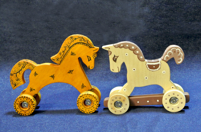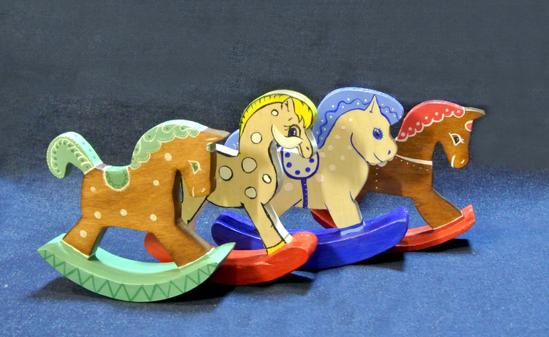 У меня сынок хочет взять и тоже раскрашивать, когда я что-то делаю. И как поступить тогда, и дать нужно и потом уже не переделаешь? Можно спросить, как сделаны ножки лошадок в форме дуги? Из чего такую дугу можно вырезать? Ее ж не вырежешь из плоской доски? Понравилось, тоже хочу сыну сделать