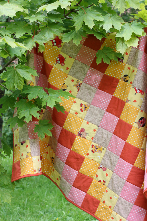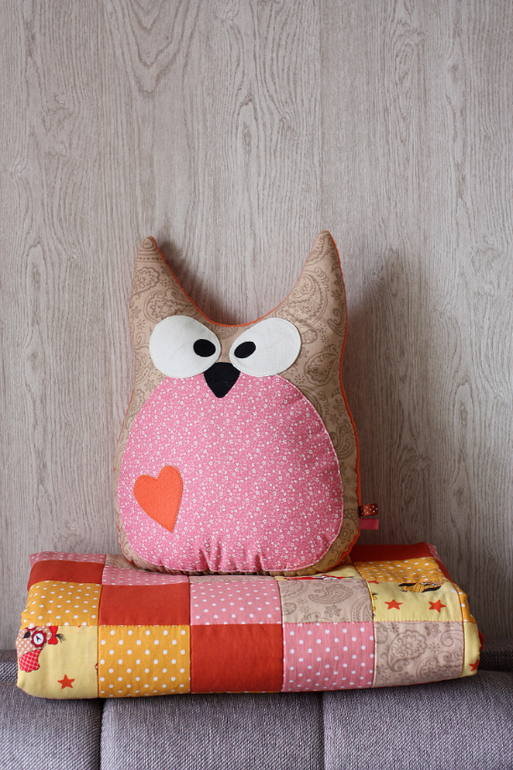 Юленька, вы-волшебница!!! Каждый раз восхищаюсь вашими одеялками-пледами и др. И сейчас, заглянула в пост и на лице сразу же улыбка - невероятно аккуратное одеялко, сочетание тканюшек отличное, уютно смотрится, а очаровательная совушка-подушка никого равнодушным не оставит - фото такие классные, солнечные!!!