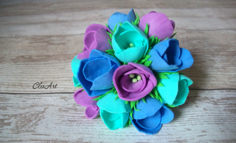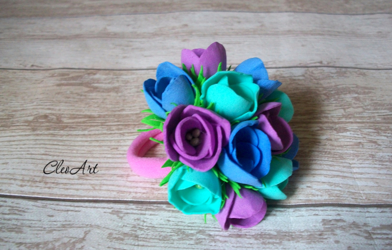Цветы из ткани и форма. Канзаши. Украшения для волос.Украшение для волос в сочетании лилового, мятного и голубого сделает прическу нарядной и романтичной. Композиция из полураспустившихся бутончиков цветов диаметром 8 см надежно закреплена на эластичную резинку.