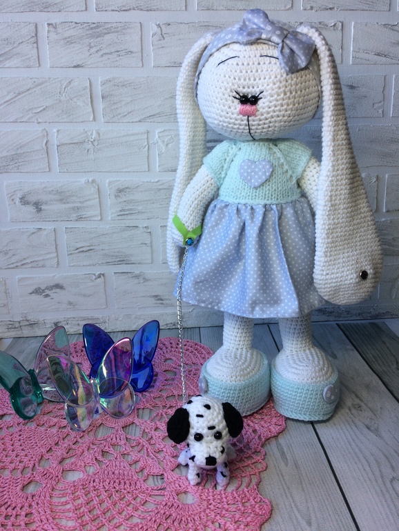 Амигуруми (вязаные игрушки)Вчера у меня родилась новая заюша с маленьким щеночком долматинца
