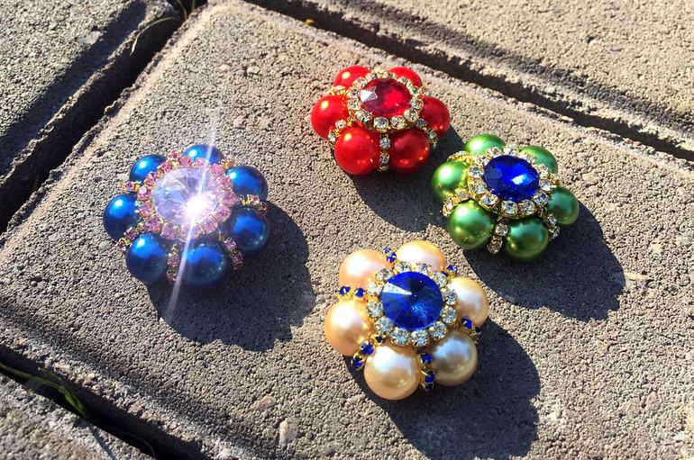 Цветы из ткани и форма. Канзаши. Украшения для волос.Летом на даче сотворилась еще одна партия красивостей для серединок цветочков, бантиков, заколочек, брошек и т.д. Как обычно бусины 10 и 8 мм, стразовая лента и сами стразинки, кот обрамляла опять же стразовой лентой. Много фото под КАТом: