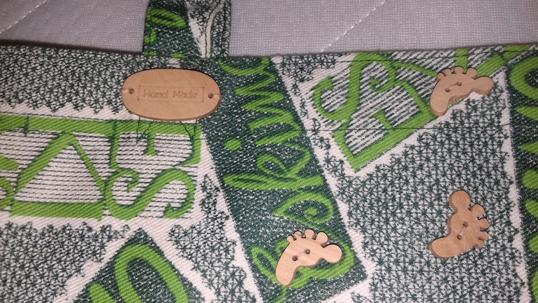 Ну и в компанию к деревянным следам добавила две деревянные пуговки в основание ручек сумки, они оповещают о том, что это ручная работа :-))) И ни у кого больше такой сумочки нет :-)
