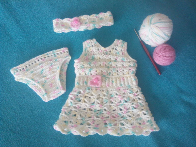 Сарафанчик по мастер-классу,повязочку сама придумала,а трусики подсмотрела . Вот что получилось: