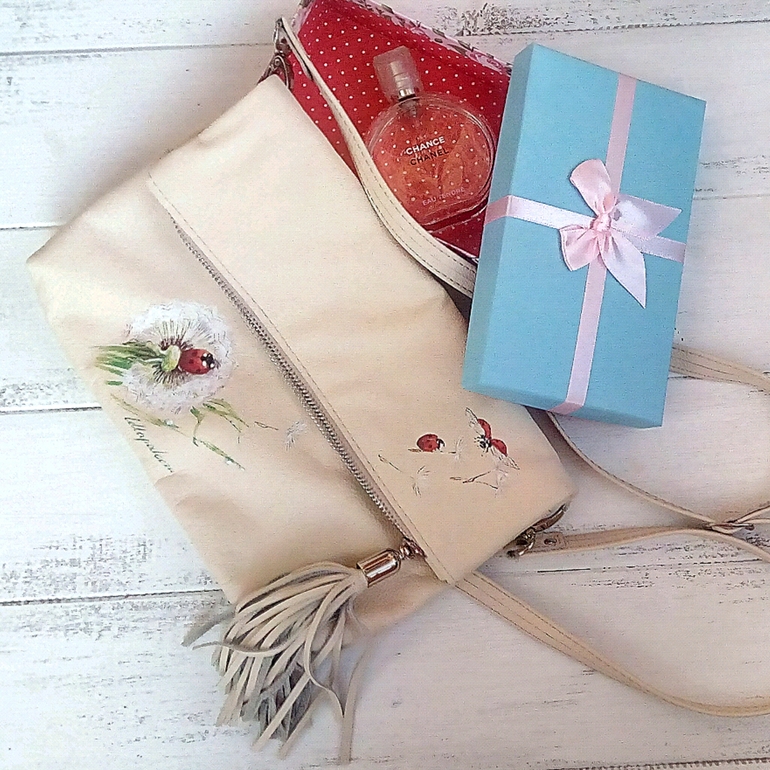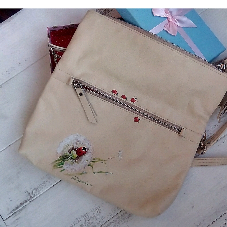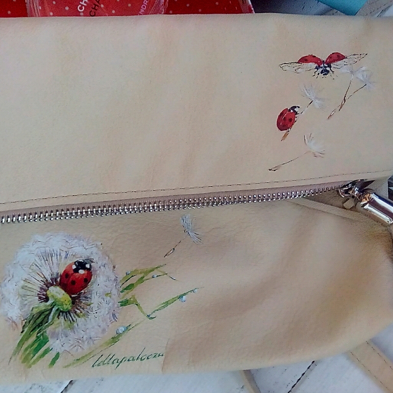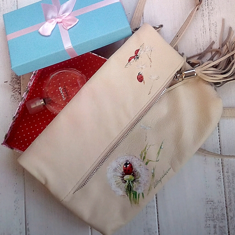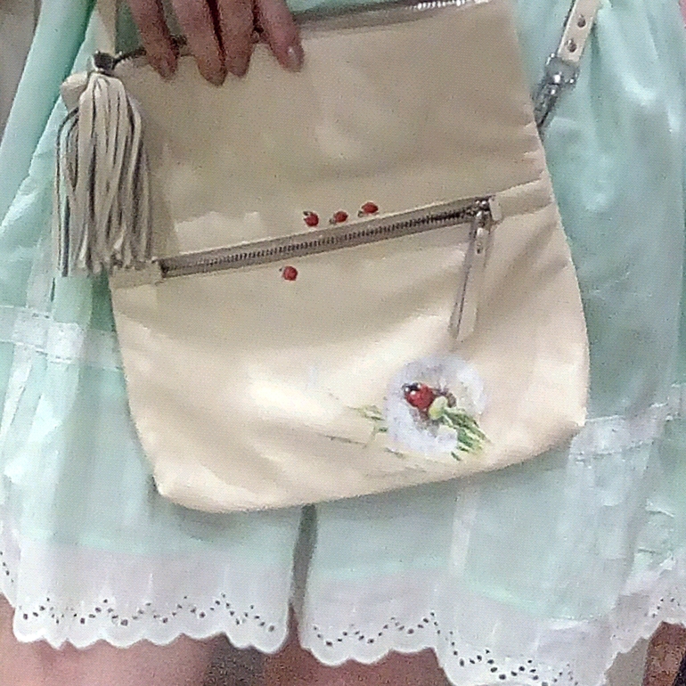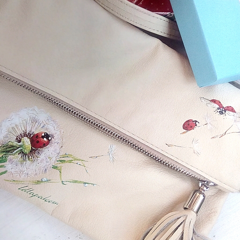 Живопись, точечная росписьКожаная сумка ручной работы. Роспись спец краской. Давно уже хотелось сделать что-то лёгкое и нежное. Фото будет много)берегите трафик😎