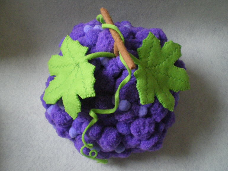 Шапка-виноград - основа из фетра, на которую нашиваются помпоны разного размера). Листики из фетра.