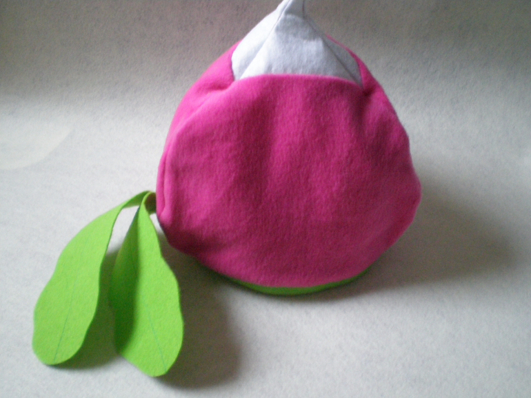 Шапки - редиска и баклажан из флиса на объемной флизелине для формы. Листики из фетра.