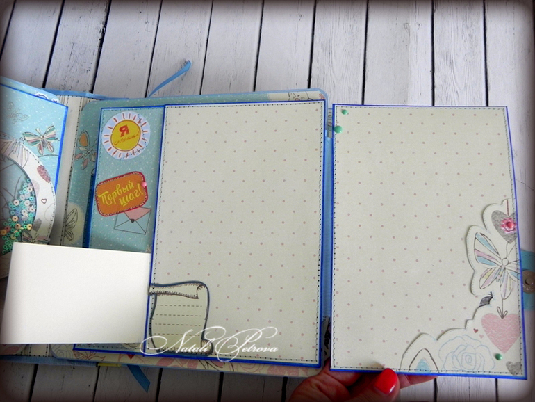 Страница вторая посвящена любимым родителям. Захлопывается она на магнит, внутри место под 6 фото и кармашек с тегом.