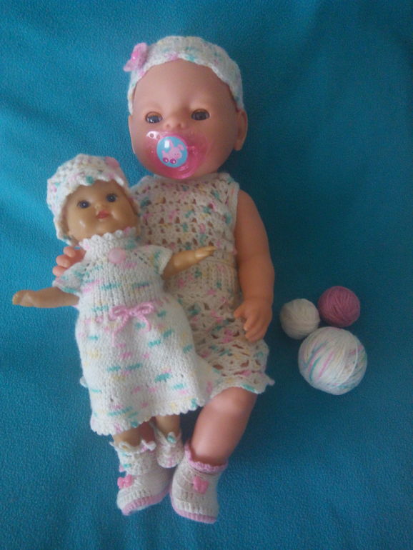 В прошлый раз вязала сарафан,трусики,повязочку для Baby Born Малины,а есть у нас ещё одна оооочень любимая куколка Маша