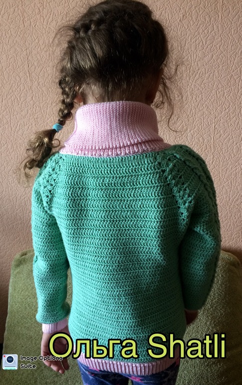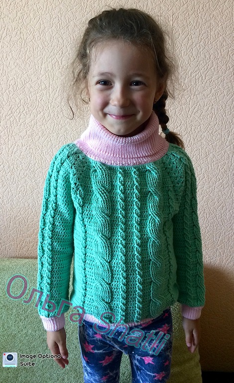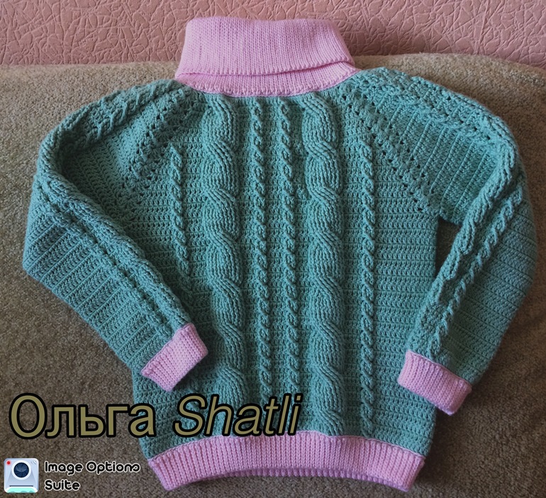 Вязание крючком (РАБОТЫ И СХЕМЫ)Наконец-то я его довязала. Больше времени потратила на резинку соединительными столбиками, чем на сам свитер. Косы вяжутся легко. Резинка долгая, но результат этого стоит. Плотное, эластичное полотно, неотличимое от спиц.
