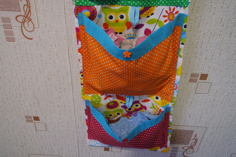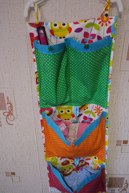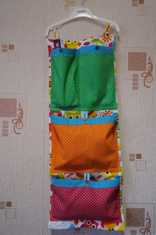 Шитье одежды, выкройки, ремонт одежды, шторы, швейные машины (уже приобретенные)Началась у нас подготовка к походу в детский сад. А так как готовность у нас ниже,чем была у братика, то стал вопрос куда складывать запасную одежду? Шкафчики в саду маленькие и не вместительные, поэтому появились вот такие карманы. Размер 80 см на 30 см, материал бязь. Работой довольна, посмотрю как поведут себя в эксплуатации.
