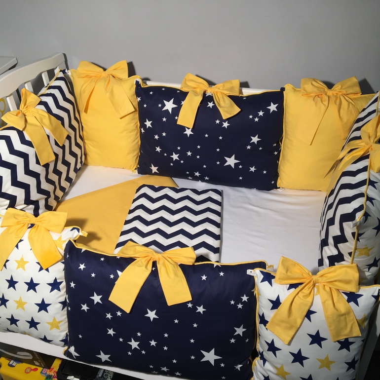 Шитье одежды, выкройки, ремонт одежды, шторы, швейные машины (уже приобретенные)Когда только ждала моего сыночка, я так хотела бортики темно синий и желтый, но так ткань и не смогла найти((( сейчас сын подрос, но свою задумку я все же воплотилась жизнь.