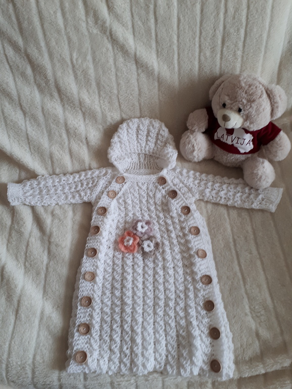 Вязание спицамиСвязала впервые спицами для будущей крошки и моей дочурке. До этого вязала крючком.Оцените.