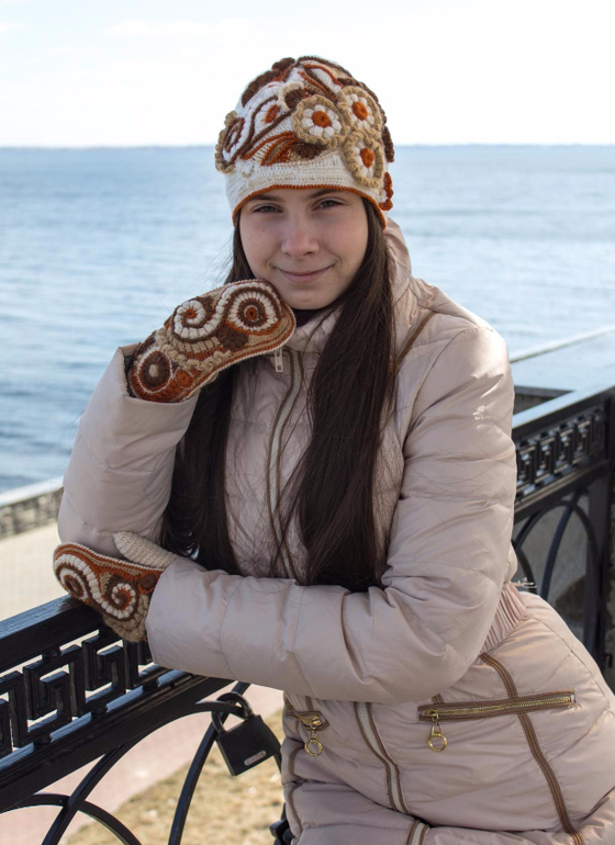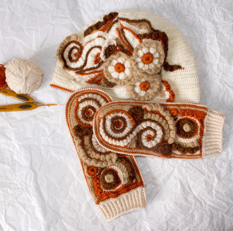 А это еще один комплект - шапка и варежки, связанные для одного из вязальных марафонов. Тема была - фриформ. Эх, и интересный же это зверь, но вязать этой техникой вряд ли еще возьмусь - не мое) А результат - судите сами. По-моему, очень даже ничего :)