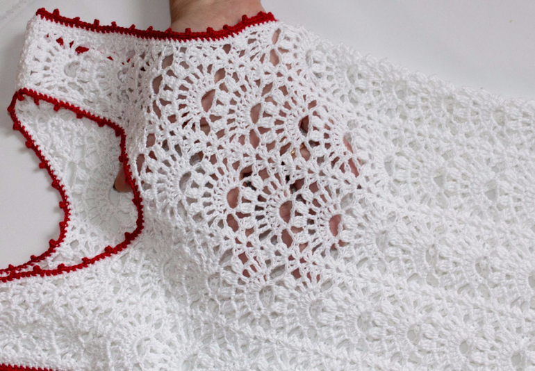 Поближе покажу узор, которым вязала сарафан. Пряжа у меня COCO, а воланчики обвязывала Ирисом.
