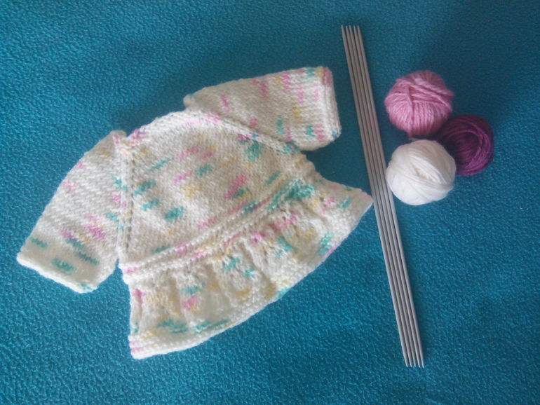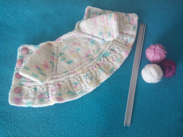 Вязала по мастер-классу, очень нравится вязать платья,кофточки регланом,удобно,но никак не научусь рассчитывать петли,эта кофточка Беби Бон маловата,а нашей крохе Маше большевата)))