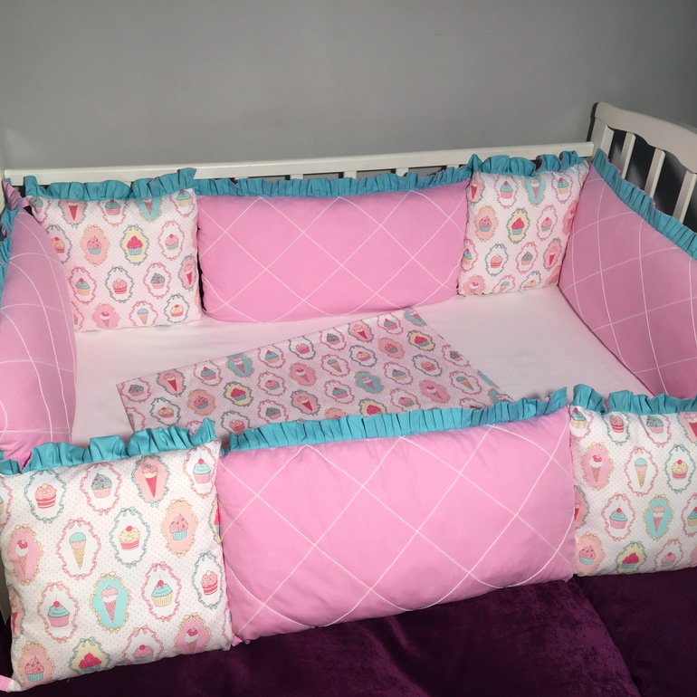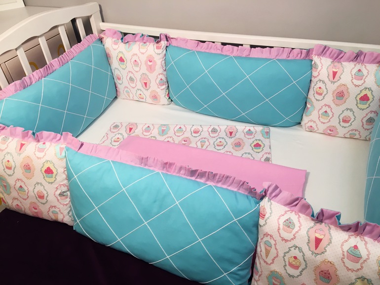 Все мои бортики без съемных чехлов. Мне ненравиться как бортики выглядят в чехлах((( и время для мамочек оочень важно, а съемные наволочки отнимают много времени.