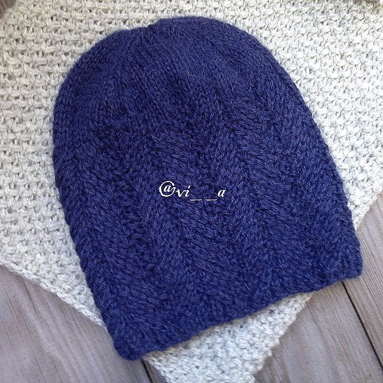 Вязание спицамиШапочка из беби альпаки насыщенного синего цвета