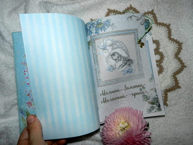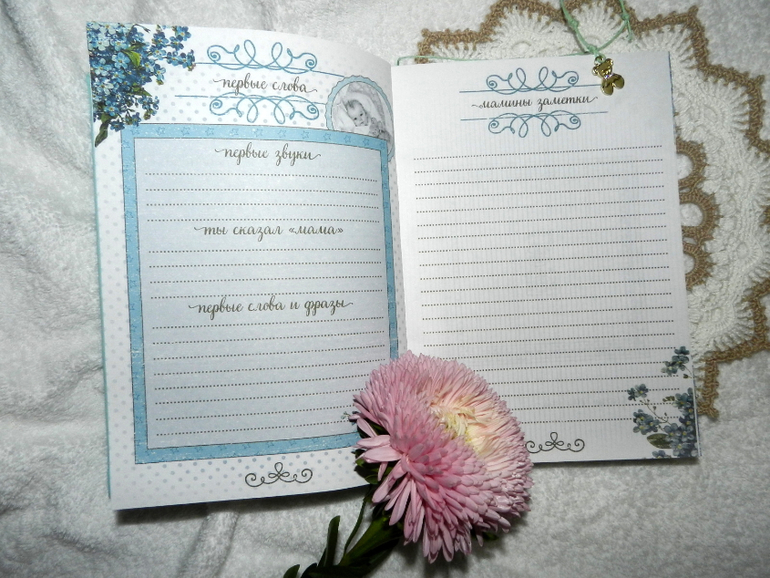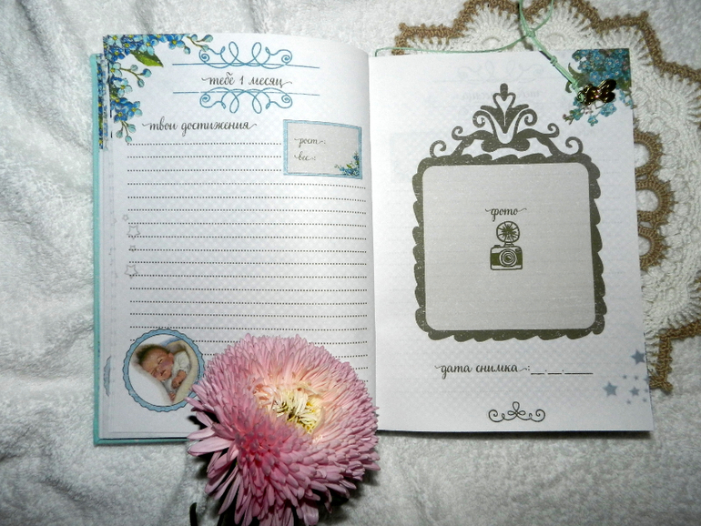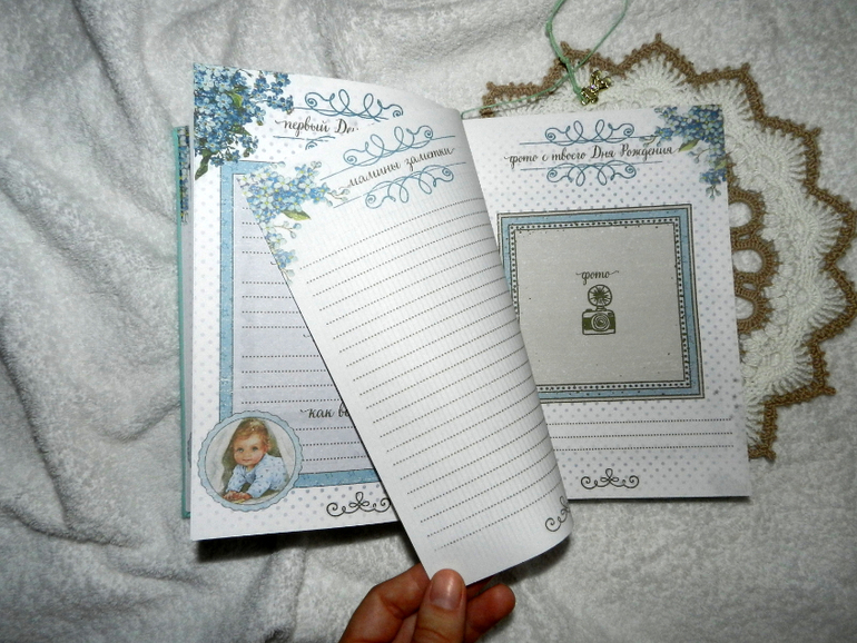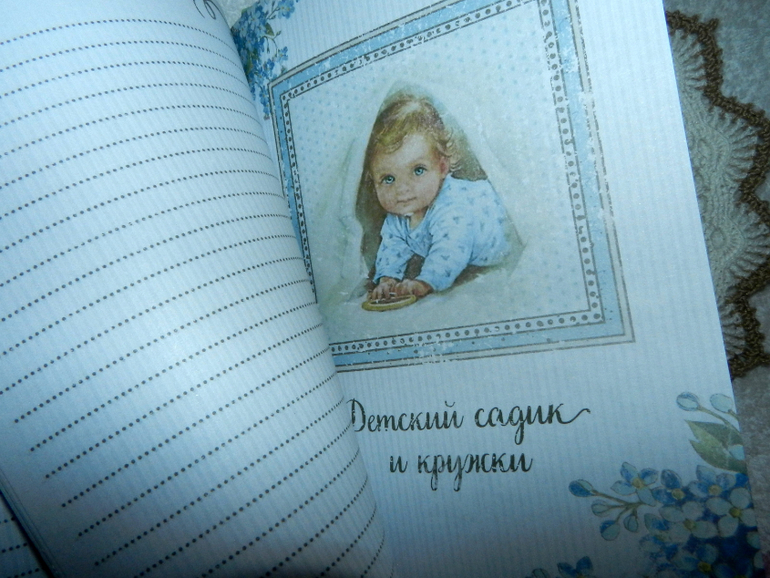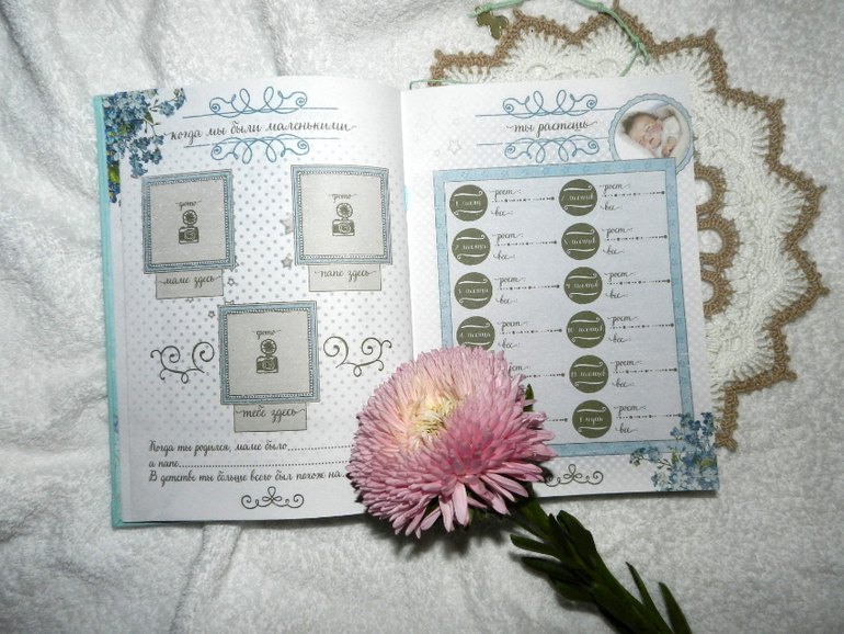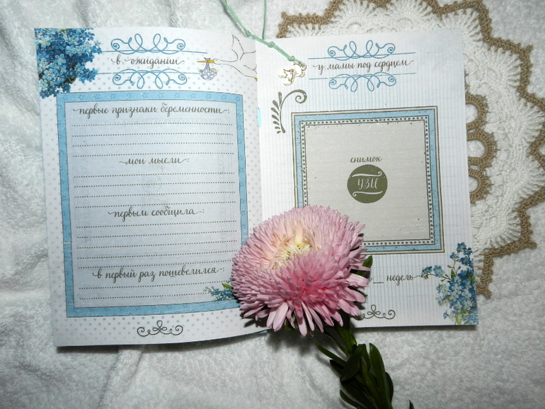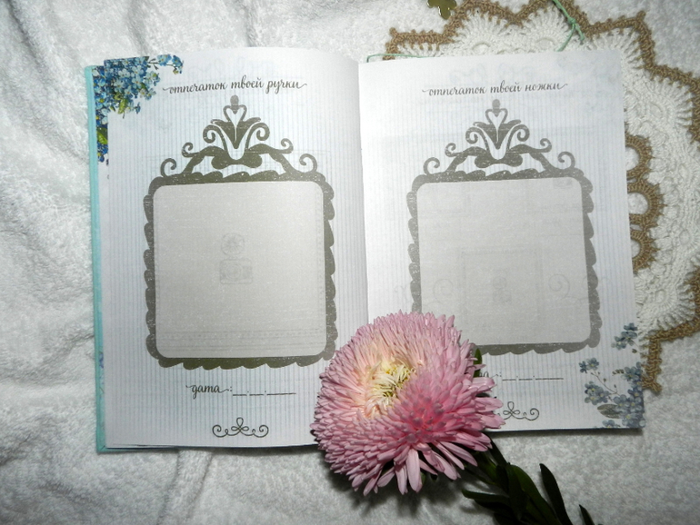 Есть места для Узи-снимков, можно разместить около 30 фото, места для отпечаточков ручек и ножек, для первых рисунков. В общем, смотрите)))) Нужно хранить воспоминания! С нежностью!