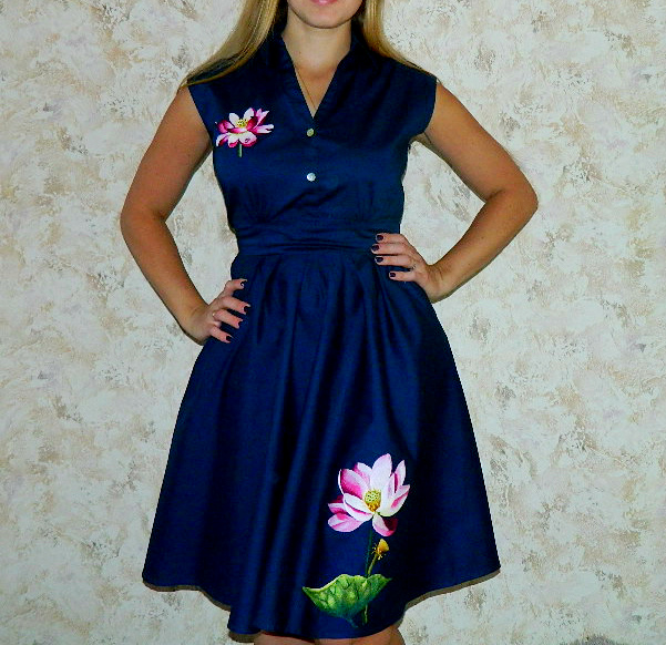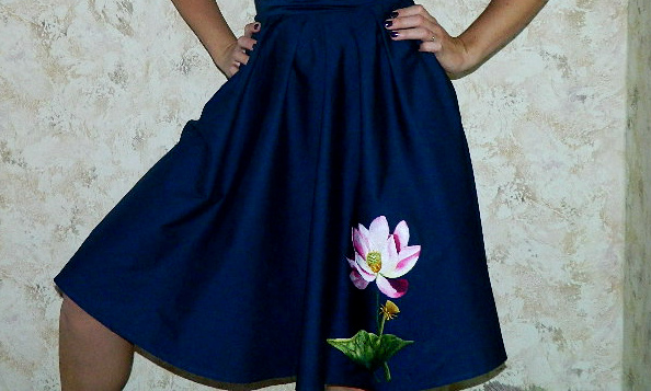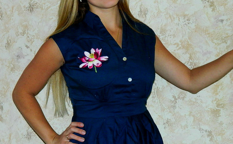 Вышивка картин. Крестиком, гладью, бисером, стразами, лентами, схемы по вышивкам, процессыВот так украсила платьице)