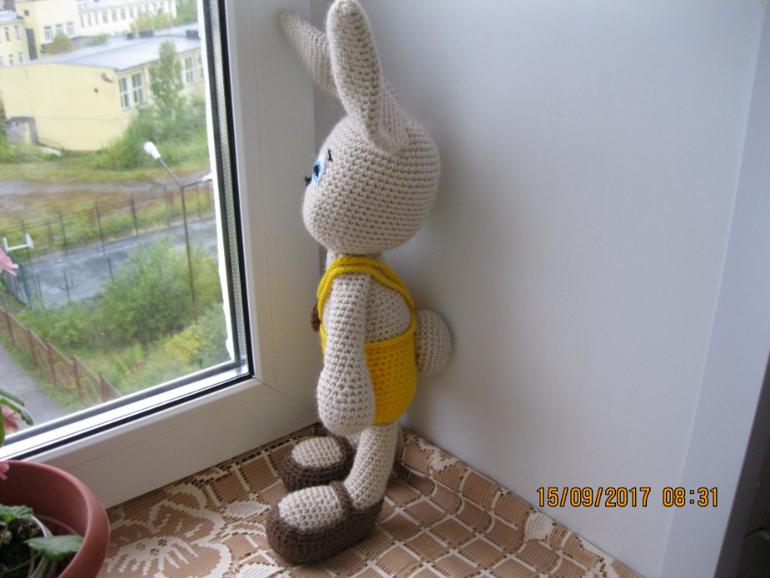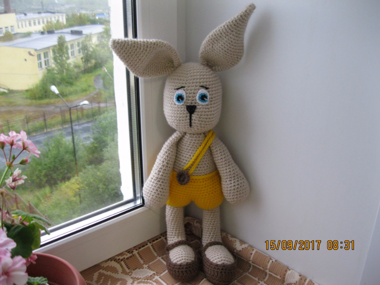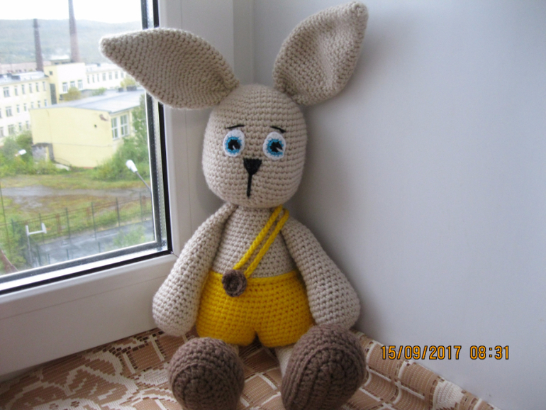 Амигуруми (вязаные игрушки)Вот такой зайчик поселился у нас)))) Пряжа детская новинка в 2 нити, крючок № 4.