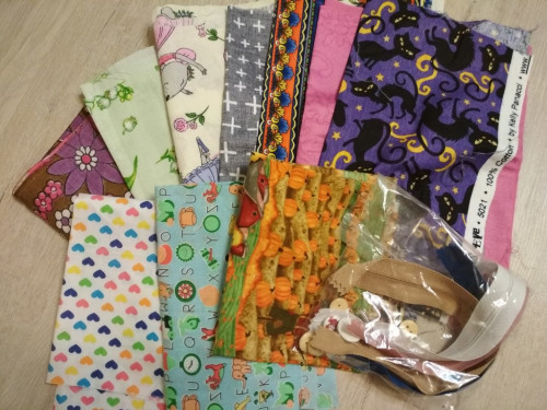 хлопок разного размера (15х30, 22х25, 50х40,70х50)пуговки, молнии. Будет ещё шоколадка;)![]()