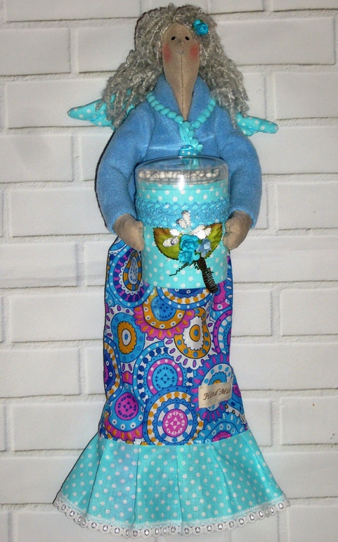 Кукольный мир - человекоподобные куклыСшила в подарок для хорошего человека)))). Куколка помимо того что будет украшением в ванной комнате,имеет еще и функциональное значение,а именно. предназначена для хранения косметических средств.Туба с ватными дисками крепится под юбочкой на 2 пуговки и при необходимости легко заменяется на новую.Имеется петелька для подвеса куколки.