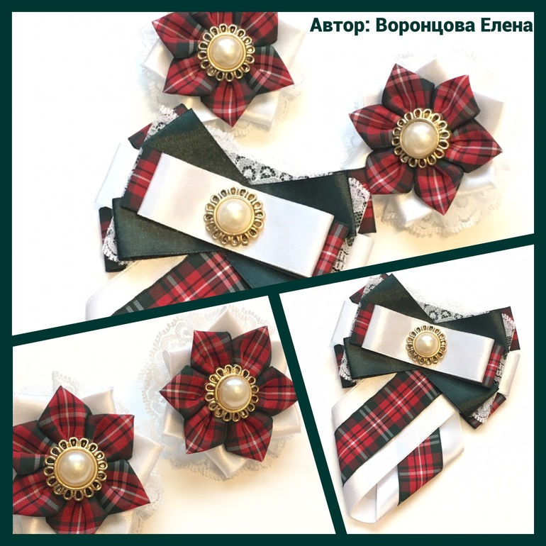 А у меня к школе получились вот такие комплектики ( резиночки для волос + галстук).