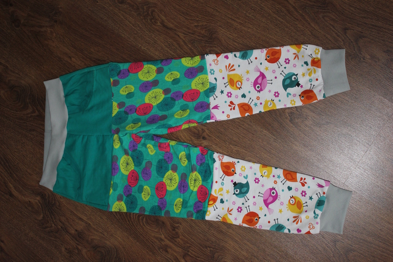 Кто бы мог подумать, что штаны, совмещенные из трех разных принтов станут "яблоком раздора" у девчонок. По мне, так они больше похожи на клоунские, смешные какие-то, а детки вдвоем вцепились в них - и никто не уступает))) Пришлось пообещать пошить не менее "нелепые" пижамные штанишки на замену)))