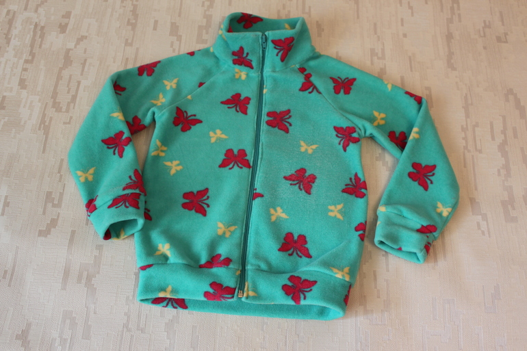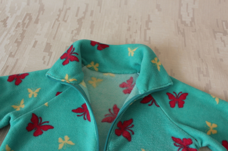 Уже к этому сезону из такой же ткани сшилась флисовая кофточка-поддева. Выкройка оттобре 4/2017 длина 122, ширина 116, можно было и меньше на мою худобу. Вместо капюшона сделала воротник-стойку.