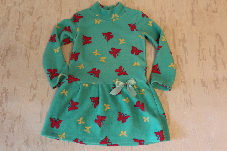 Еще зимой сшилось тепленькое платье в садик из флиса. Выкройку моделировала сама, на основе имеющейся выкройки кофточки.