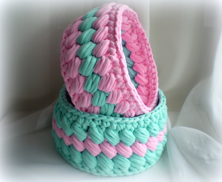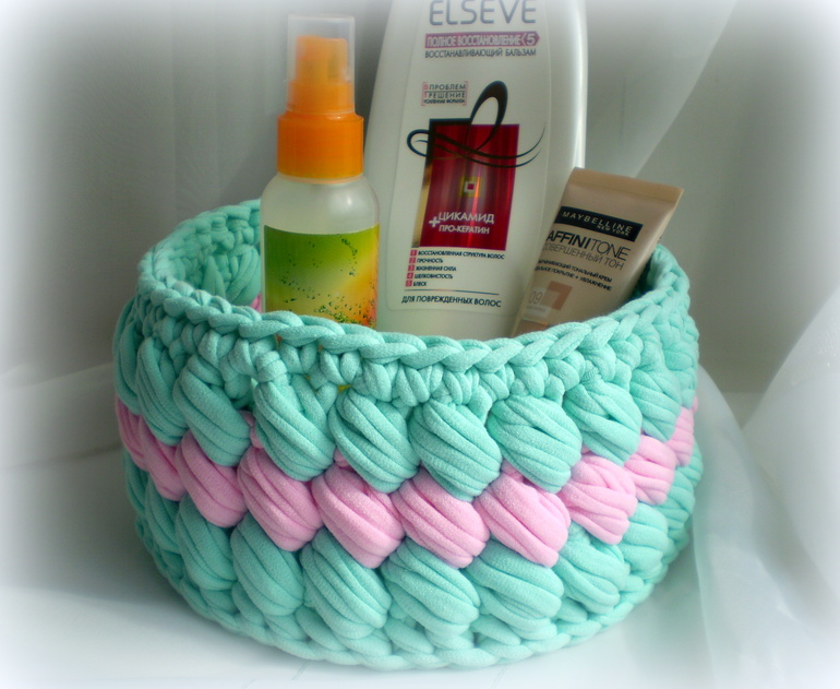 Спасибо))) А вы наберите на ютубе видео "Как связать корзинку из трикотажной пряжи". Будет масса вариантов. И выберите какой вам нравится.