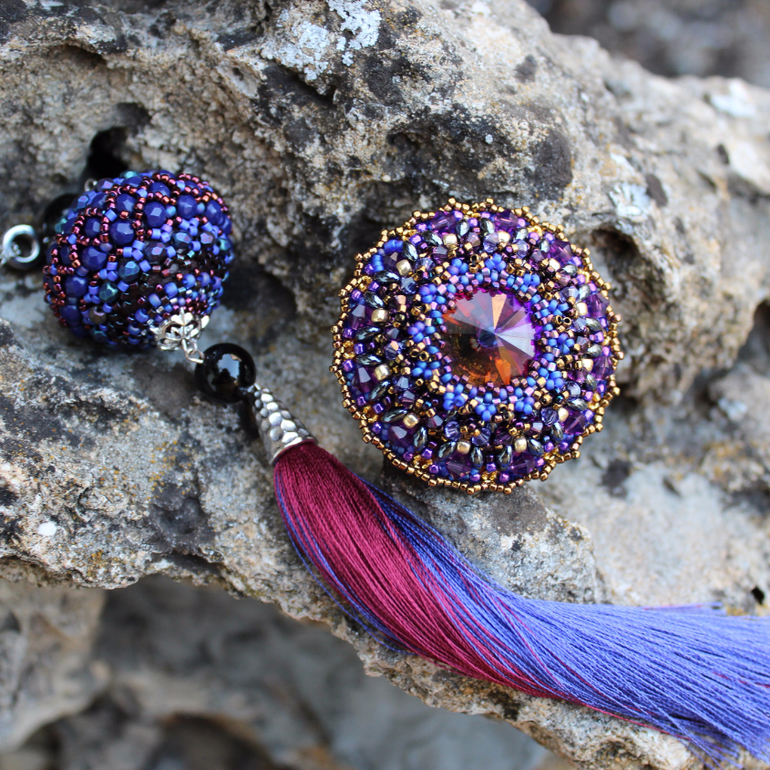 Брошь с кристаллом и элементами Сваровски и сотуар с градиентной кисточкой! Отдельно сотуар покажу чуть позже!