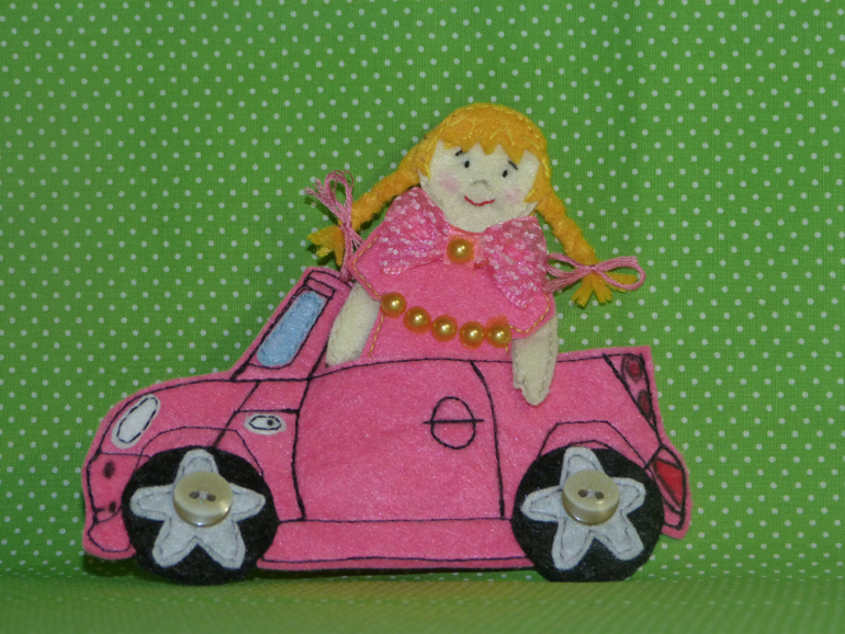 Живёт куколка в самом настоящем замке, под охраной верного пса. А ещё, как у настоящей принцессы - у неё есть конь, только современный, 4-х колёсный. Машина крепится при помощи липучки на задней стороне обложки.