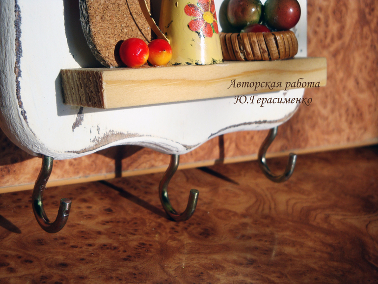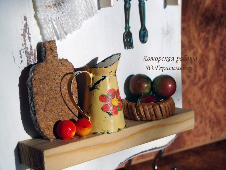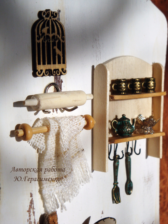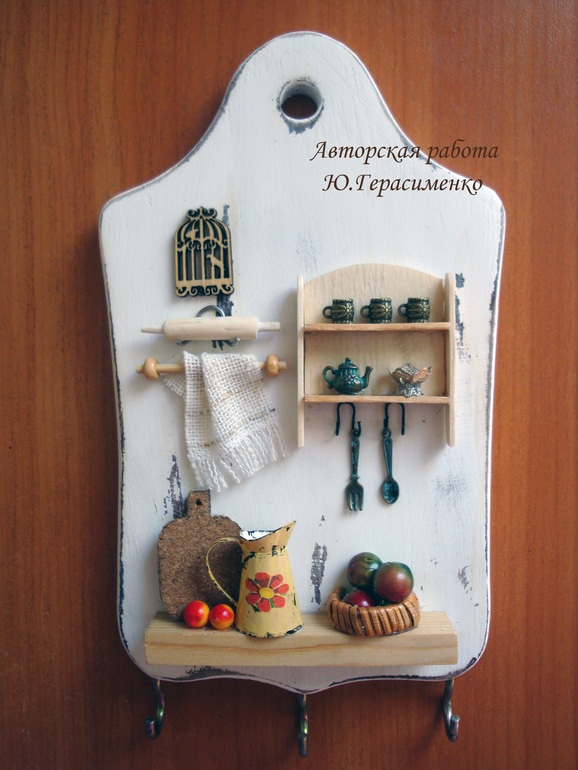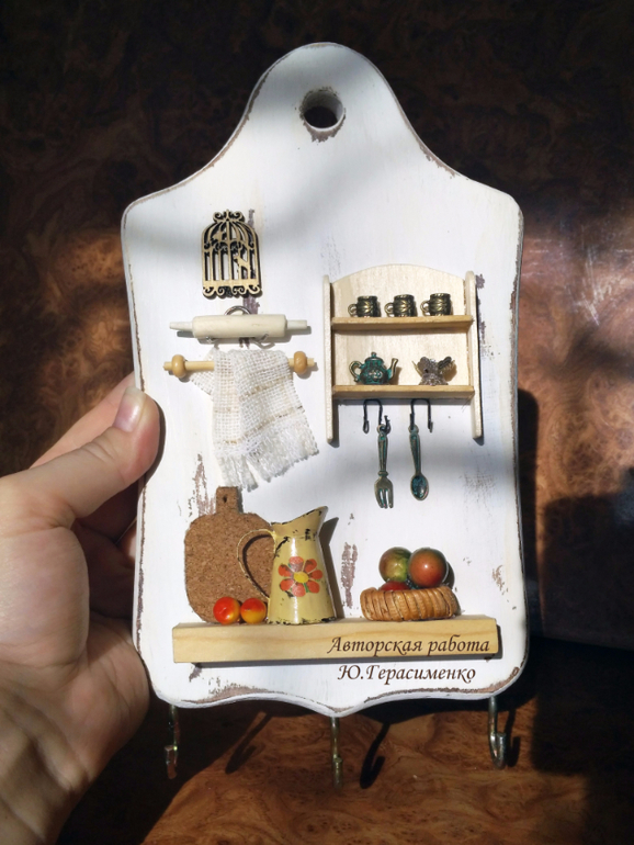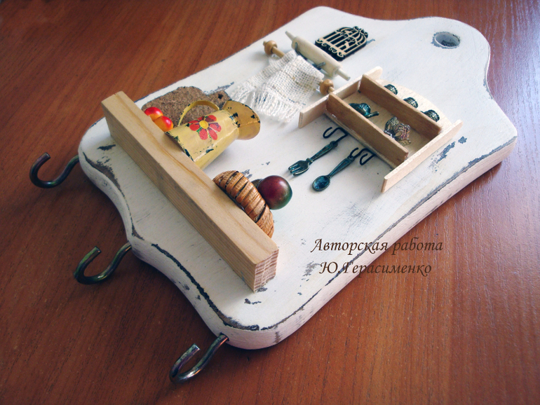 Основа имеет размер 23х13 см, крючки 2,5 см. Покрыта нетоксичной акриловой краской. Миниатюрные детали выполнены вручную либо подобраны.