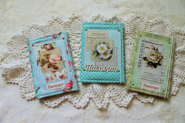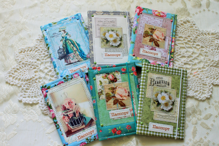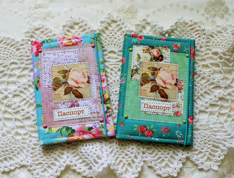За август - сентябрь сотворилось у меня довольно много обложек на паспорт. Размер 14*9см, паспорт свободно помещается, закрываются на резиночки