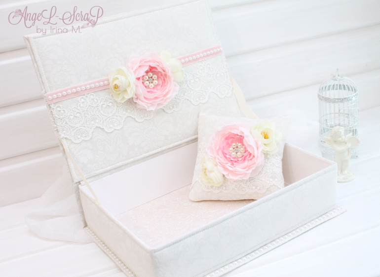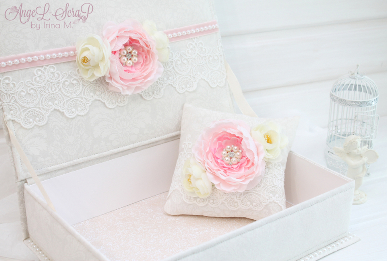 Свадебный комплект: альбом для фото, короб для аксессуаров, подушечка для колец
