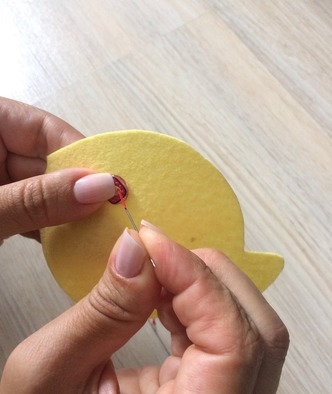 Начинаем собирать. Сначала надо к желтой рыбке пришить пуговицы