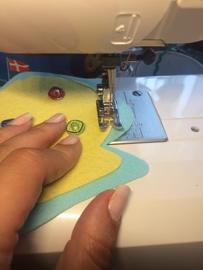 затем пришиваем желтую рыбку к голубой