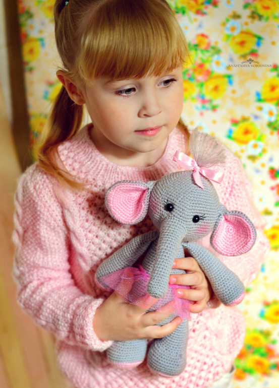 4. Слоняшка Мила Связана по описанию MyCrissieDolls. Рост Милочки 30 см. Ножки подвижны, умеет сидеть и стоять. Связана из детской гп пряжи, наполнитель синтепон.
