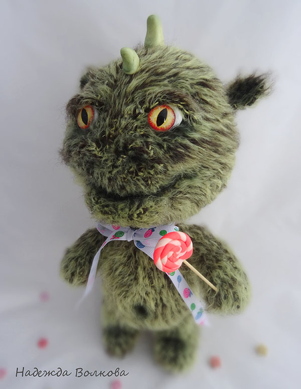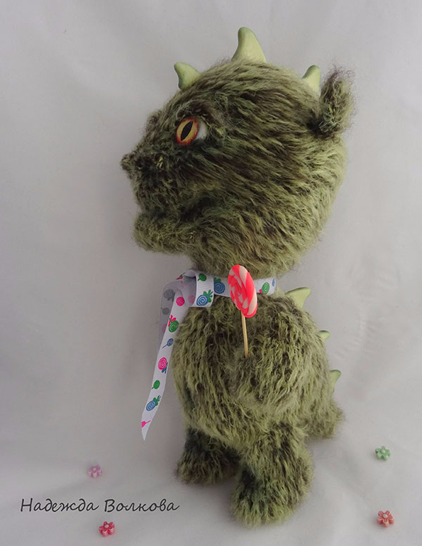 Амигуруми (вязаные игрушки)В рамках Рукодельного колейдоскопа здесь на ББ связался малыш динозаврик, который очень любит конфетки. Пряжа ЛТС, расход 100 г, крючок 2, лапки на нитяном креплении, леденец и гребешки слеплены из полимерной глины. Ростиком 25 см, стоит сам, сидит с опорой.