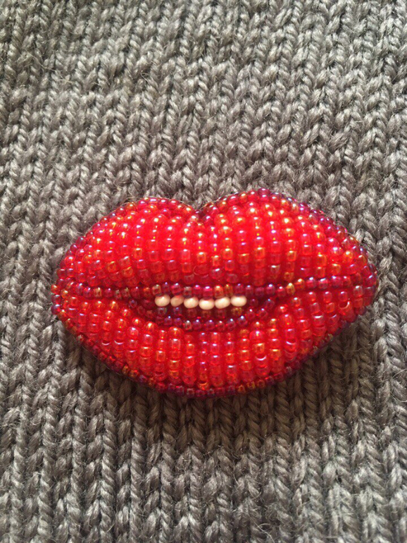 Очень красиво. Сама давно на подобные засматриваюсь и хочу сделать. Может розовый вариант губ попробуйте без белого бисера сделать. Мне кажется, что милее получится ))) Стеклярус этого бензинового оттенка шикарно смотится.. еще и завитой такой. очень интересно.